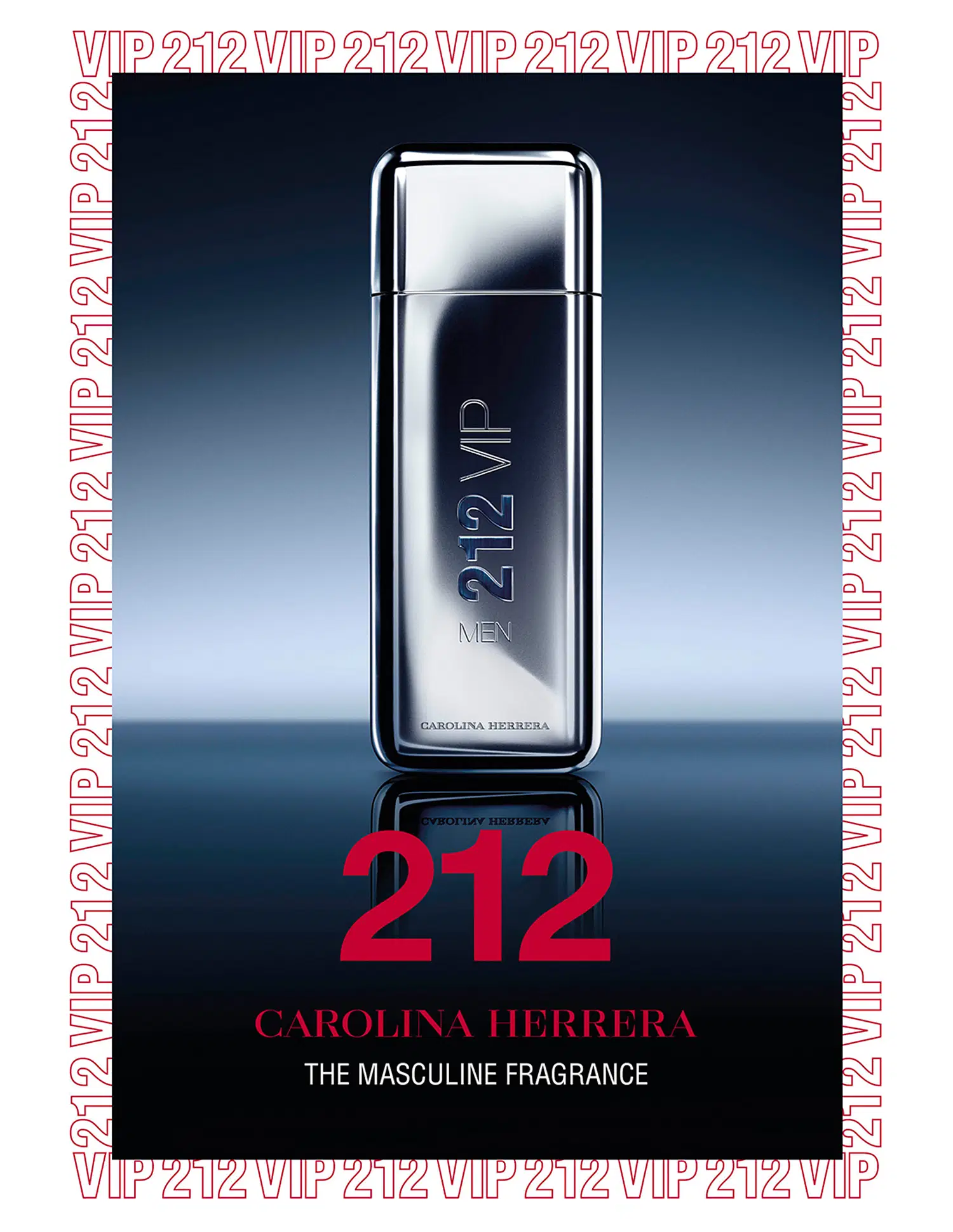 Introduced in 2010. With Carolina Herrera 212 VIP Men you don't just go to the party. You are the party.212 VIP Men is the scent of the envied and desired man. He is the life and the soul of any occasion, a sophisticated connoisseur of fun and luxury. - His scent is inspired by the vibrancy of his exclusive parties, the olfactory interpretation of smouldering looks and a fresh attitude. The energetic juice is as smooth as a fine drink, with unique accords of Lime Caviar, Chilled Vodka, and a touch of Mint. Welcome to the world of 212 VIP Men... a world of charisma and trouble, elegance and exclusivity. - Top Notes: Lime Caviar - Heart Notes: Chilled Vodka, Frozen Mint - Base Notes: King Wood